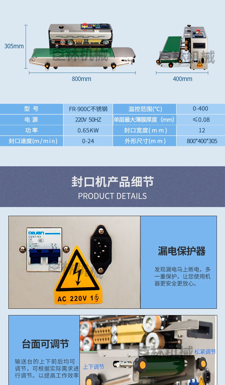 【自动连续封口机FR-900C大电机不锈钢】详细信息